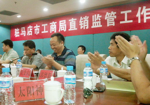 6月20日,太阳神等九家直销企业受邀参加了河南驻马店市工商局组织的直销企业座谈会。驻马店市工商局公平交易科科长侯金启主持会议,驻马店市工商局主管副局长杜亚民,经侦支队支队长施卫平,高新分局、专业分局、驿城分局等分管领导及主要工作人员出席会议。
