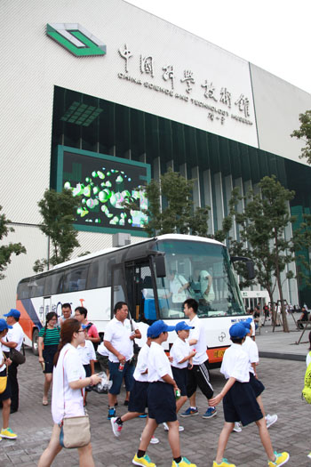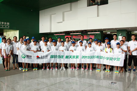 当天下午,北京国珍爱心基金会秘书长张红与同学们一起,兴致勃勃地来到中国科技馆。大家在大厅拉开条幅合影留念,“国珍少年 航天未来”几个大字格外引人注目。
