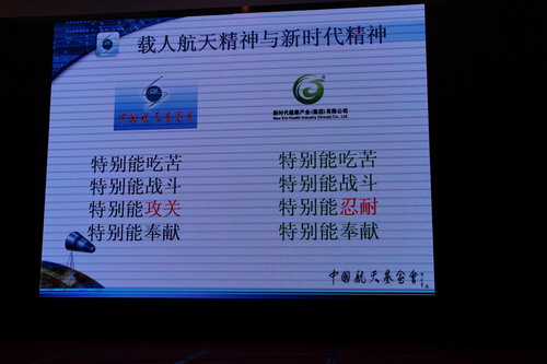 上午结束了红岩精神报告会,下午民生大酒店依旧座无虚席,新时代航天报告会按时举行。前不久神十圆满完成任务,安全返回,振奋了国人的信心。这次在重庆璧山举行的航天精神报告会,对尚不了解航天的人们来说,在科普教育方面,起到了非常好的作用,更加开阔了经销商们的视野和知识。担任主讲的是中国航天基金会宣传部部长、首任中国人民解放军航天员大队大队长申行运先生。他为全场的新时代家人上了一堂生动的航天课。作为中国航天事业的合作伙伴,申队长表示,必须要具备三个要素:一是企业及其员工必须热爱中国航天事业;二是产品质量可信赖,在市场上有一定知名度;三是为行业发展做出一定贡献,是行业内的佼佼者。新时代无一例外,三个条件全具备了,更重要的是公司在展示和传播正能量的同时,在全国各地举办航天精神报告会,也向大众普及了航天知识和宣传了航天精神。