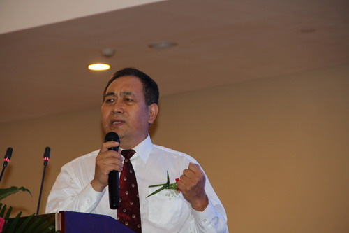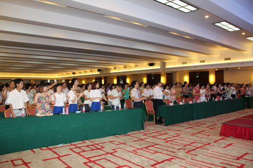 会议最后,新时代五星高级经销商冯景华先生上台做了精彩的演讲。他从红岩精神讲起,谈到航天精神,并激励新时代人不要忘记历史,要有红岩精神和航天精神,继续奋勇向前,创造出更多的辉煌,让新时代事业在重庆大地上越来越繁荣。演讲中,冯景华旁征博引,尤其是毛泽东的著名词句,简直信手拈来。因为上午听了厉华教授的红岩精神报告会,他有感而发,在会上他朗诵起了叶挺的《囚歌》,耳熟能详的词句引起了全场共鸣。最后在他的带领下,全场齐唱《红梅赞》。
