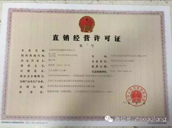 和治友德直销许可证上显示批准日期为3月8日,排名为第75号;