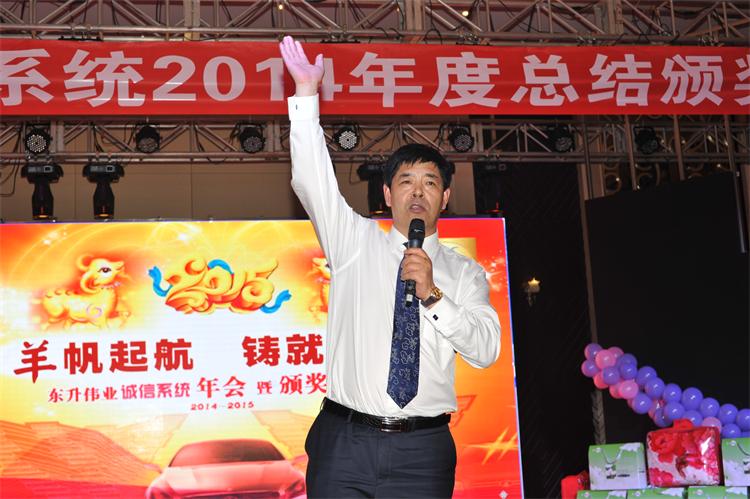 大会在欢快悠扬的小提琴演奏中拉开帷幕,诚信系统创始人高庆亚先生的致辞把大会推向第一个高潮。高总对2014年广大经销商拼搏奉献的创业精神给予了高度评价,同时做了2015年展望和部署,并提出了诚信系统的奋斗目标,为确保目标的实现,必须做到“五统一”即:统一思想、统一模式、统一流程、统一方法、统一行动。今年需要我们俯下身子,夯实基础,做好“五统一”的系统工程,踏踏实实把业绩做出来,以回报东升伟业集团公司、回报于爱东董事长为大家所做的一切。齐瑞芬女士向与会来宾剖析了东升伟业的商机与优势、产品与模式,令大家兴奋不已。最后,高总慷慨激昂的演讲再次引爆全场,他说:回顾过去,我们无怨无悔,展望未来,我们信心百倍,纵然前进的道路会有艰难险阻;我们的选择不变、我们的梦想不变、我们的目标不会变!诚信系统一定会带领伙伴,在东升伟业这艘航母上乘风破浪、扬帆远航、驶向成功的彼岸!整个会场掌声、欢呼声此起彼伏,会员们群情振奋、斗志昂扬、决心全力以赴奋战2015!