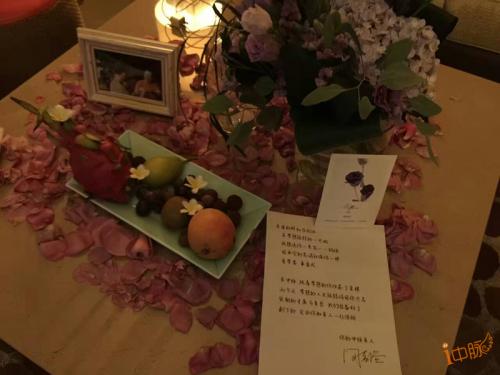 这束花叫“桔梗”,是根据今天入住的嘉宾性格定制,贴心的卡片写着:桔梗寓意永恒的爱,正如您始终相信梦想,一切终成美好。是的,我会带着梦想追随中脉一直走下去。