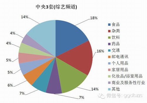 其中食品、饮料和药品类品牌投放比例占据前三甲,分别占据18%、14%、7%。