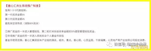 善心汇共生系统推广制度鼓励发展下线拿提成的模式非常符合传销的发展形式。