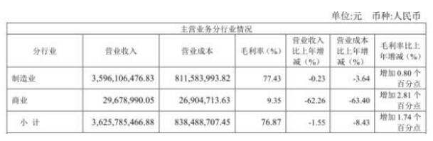 半年报显示,康恩贝上半年主营业务毛利率为76.87%,比上年增加1.74个百分点。