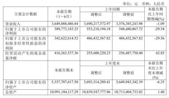 今年上半年,康恩贝实现营业收入为36.50亿元,同比减少1.09%;实现归属于上市公司股东的净利润为3.90亿元,同比减少29.54%;扣除非经常性损益的净利润为3.43亿元,同比减少29.56%。