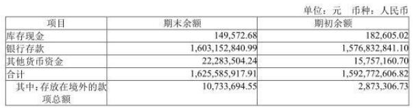 其中,银行存款16.03亿元,库存现金14.96万元,其他货币资金2228.35万元,合计拥有货币资金16.26亿元。