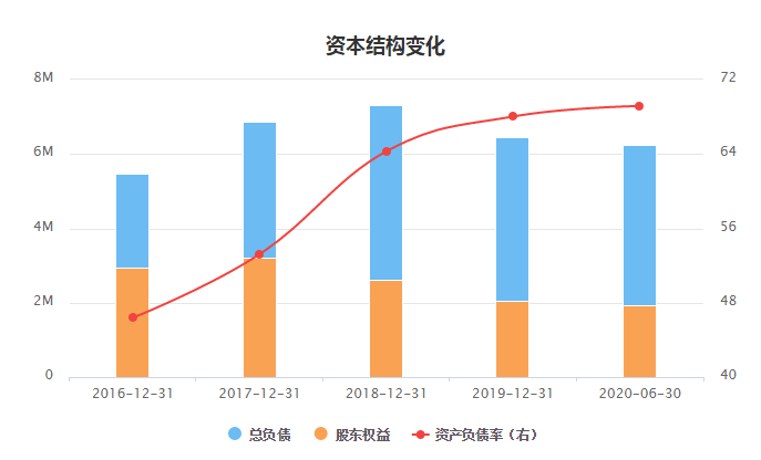 康美药业2016年以来资本结构变化情况。数据来源choice