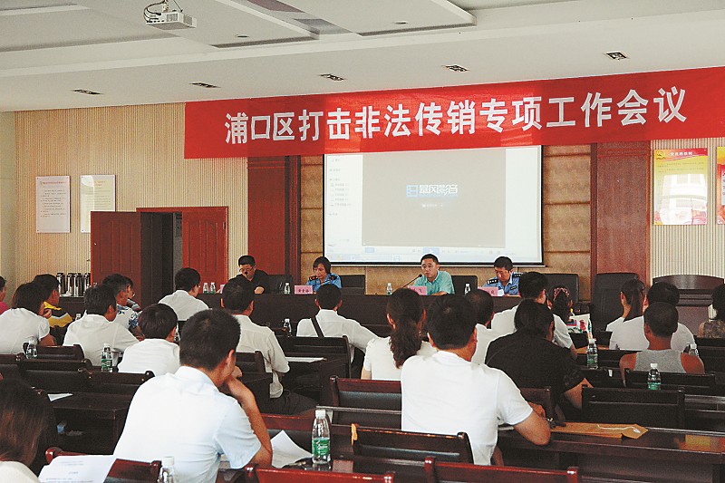 行动中,执法人员共抓获来自湖南、湖北、河南、陕西等10余省市涉嫌传销人员500余名。经执法人员对上述人员初步审查后,对其中为首的10名涉嫌组织领导传销活动的进行了刑事拘留。图为浦口区工商局联合公安、通信、房产、社区等部门召开联席会议,部署集中打传行动。