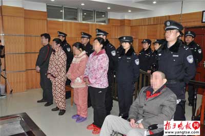 民警参加传销:昔日的民警封平(左一,化名)因为涉嫌组织、领导传销活动罪与其他嫌疑人一起站在被告席上。