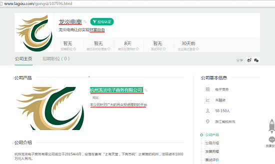 龙炎电商全称叫什么,到底是做什么的?融360小编在某招聘网站发现龙炎电商,全称“杭州龙炎电子商务有限公司”,不过公司网站已无法打开。