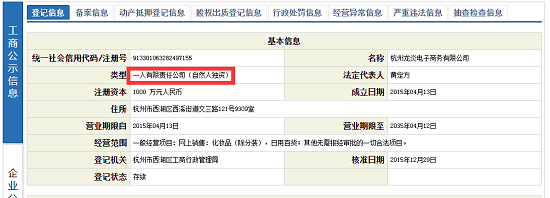 可龙炎电商在工商登记里的信息却显示,它只是一家“一人有限责任公司(自然人独资)”,根本不具备发行股票的资格!