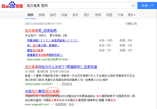 小融又试着在百度搜索“龙炎电商 官网”,搜到了“中国龙炎集团|龙炎电商”。