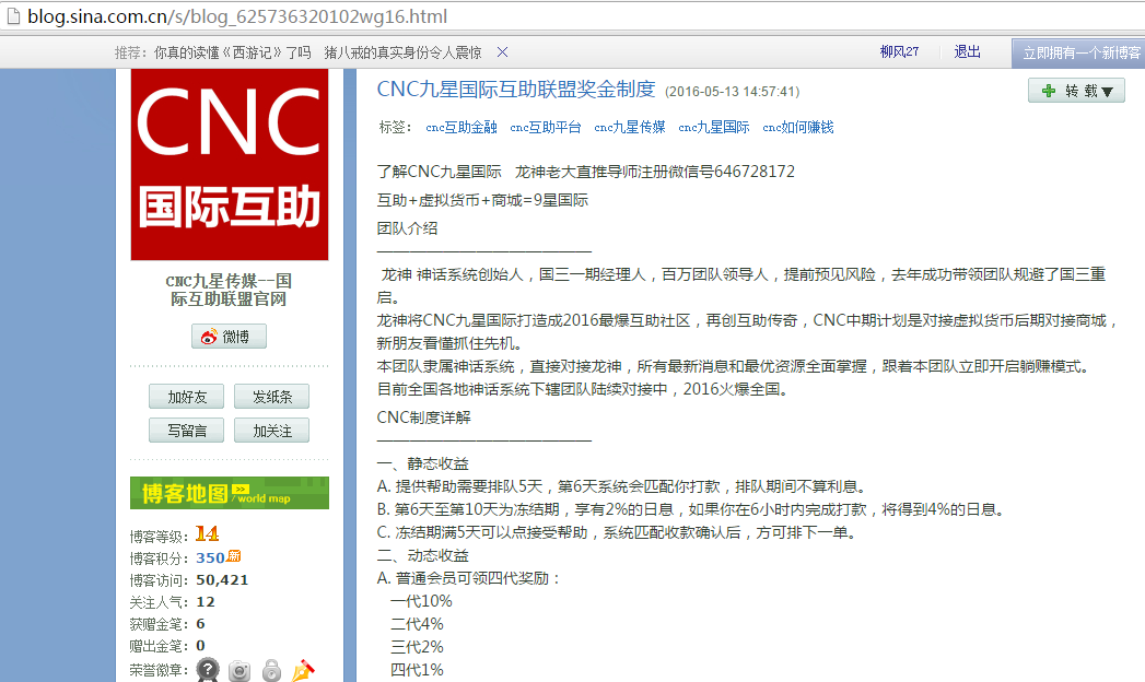 别再上当了!CNC九星国际互助联盟疑为传销骗局