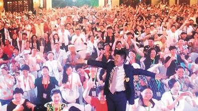6月初,创造丰盛北京盛典现场,主持人鼓励大家“挥动翅膀,参与共振”。
