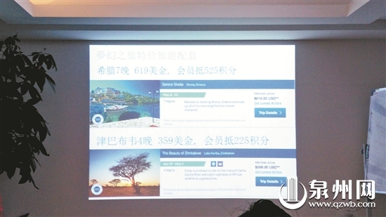 “今年我开始兼职做,全球这么多会员,不会是假的。”面对记者的担心,她说没关系,大家是团队作战,会互相帮忙。“每周在这都有招商会,你不会讲没关系,只要把旅游的经历分享到朋友圈,有人感兴趣就带到这里,老师统一帮你讲解。”