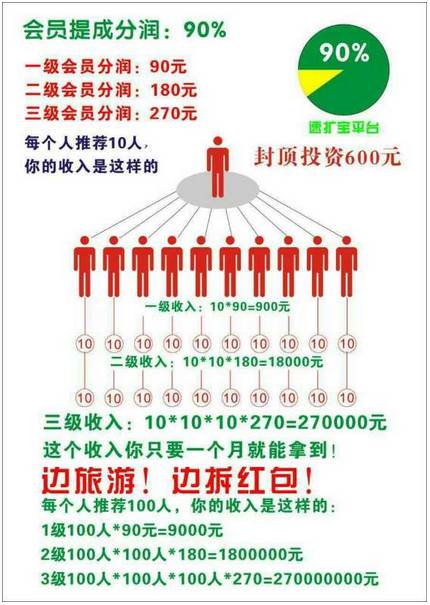 3、 投资600元成为全国代理,得无数个270元红包