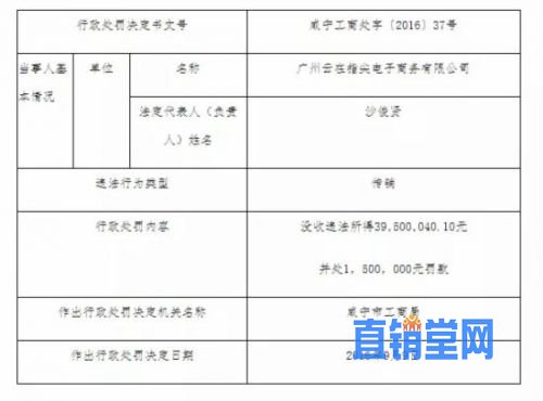 咸宁市工商行政管理局对广州云在指尖电子商务有限公司做出行政处罚:1、罚款150万元人民币;2、没收违法所得39500040.10元人民币。云在指尖相关负责人已申请注销公司。