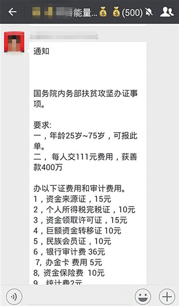 以上述8.69元的报单费计算,仅一个400人的群即要上缴近3500元。家属们称,类似的报单每个月会有十几次,并时刻允诺,每项报单都有相应的巨额善款发放,如果不报,则面临出局。
