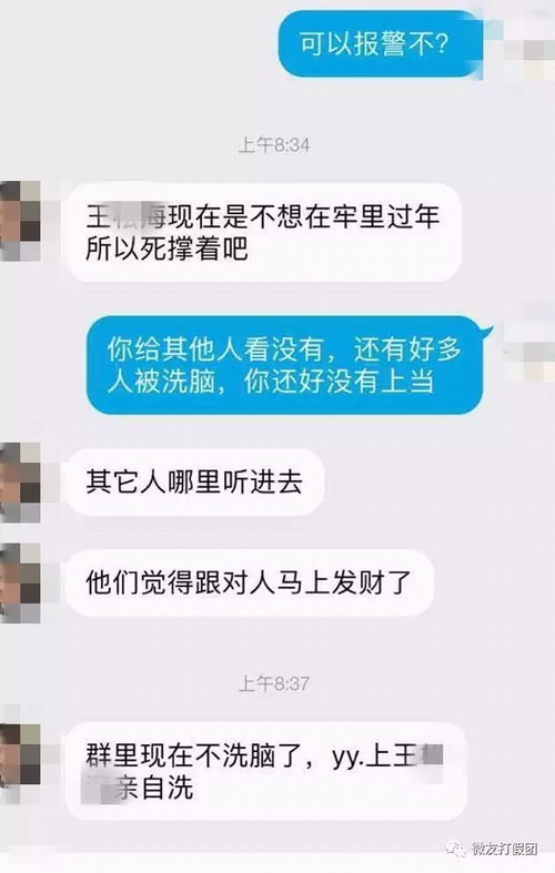 原本欢天喜地的洗脑群,面临崩盘之时,骗纸原本的狰狞面目就会显露无疑。啥“家人” 啥“大爱” 啥“趋势” 只不过是用于洗脑的精神工具。不少投资者被逼上梁山,无奈都想到了报警处理。
