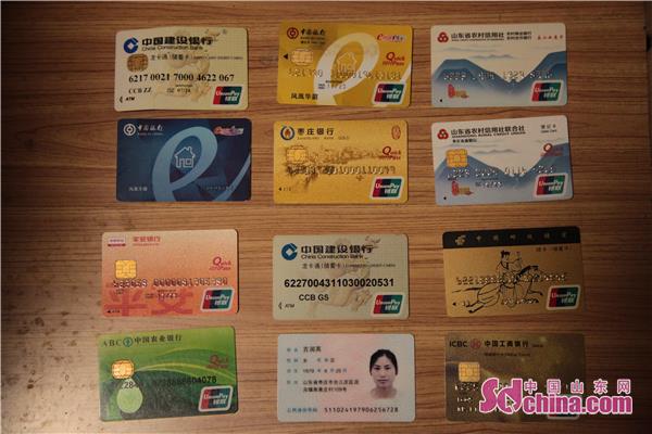 公安部门查获的部分银行卡及身份证。