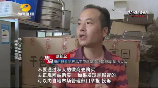 据调查,该团伙生产的这些假冒食品,大多通过微商销售,由于这种销售是在熟人当中进行,很大程度上逃避了质监、工商、税务等部门的监管,而市民自身往往很难辨识。因而不知自己购入的是假冒伪劣产品。为此,执法人员提醒消费者:“不要随意购买微商产品,一定要核实身份并通过正规渠道购买,如果发现假冒产品可以像当地市场管理部门举报。”