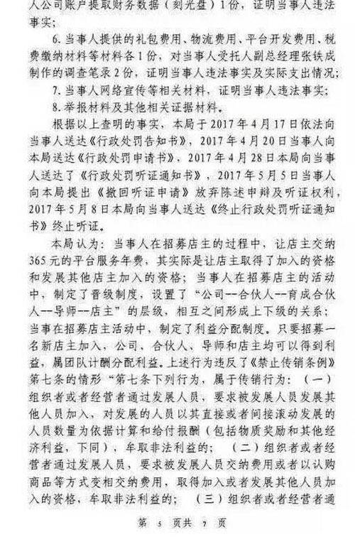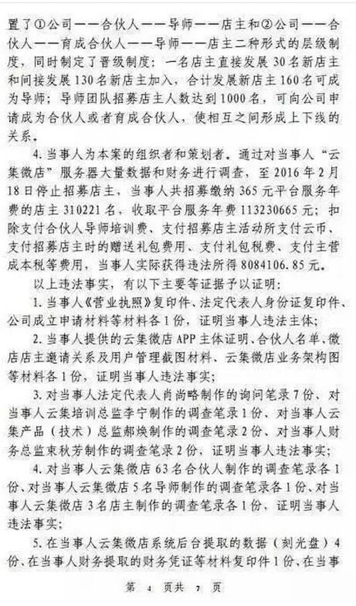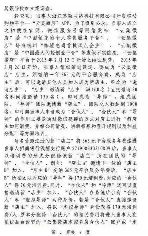 滨江市场监督管理局认为,云集微店在招募店主的过程中,让店主交纳365元的平台服务费,其实际是让店主取得了加入的资格和发展其他店主加入的资格,制定了晋级制度。在招募店主活动中,制定了利益分配制度,只要招募一名新店主加入,公司、合伙人、导师和店主均可以得到利益,属团队计酬分配利益,违反了《禁止传销条例》第七条的情形。