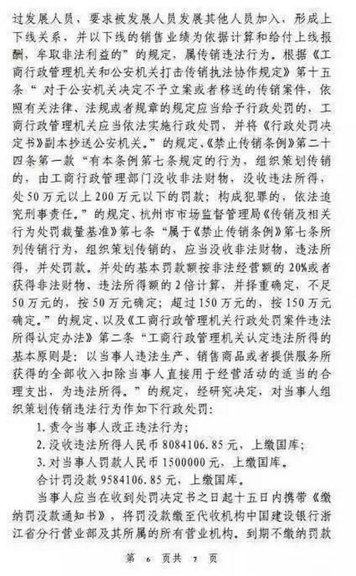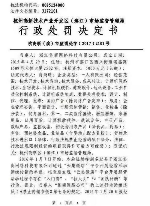 对云集微店组织策划传销违法行为,滨江市场监督管理局做出如下处罚: