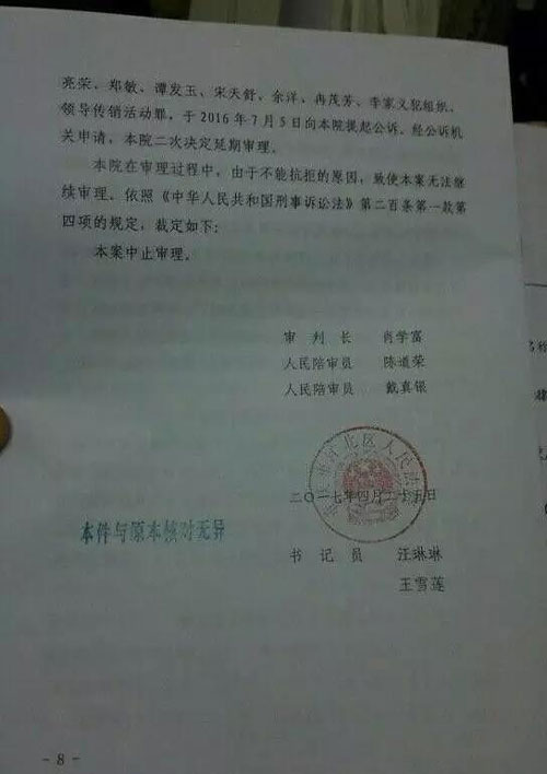 在今年4月份由于法院在审理过程中,由于不可抗力原因,致使本案无法继续审理。