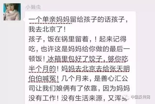 更令人愤怒的是,为了达到干扰执法部门对善心汇的依法调查,这些极端的会员开始编造例如“单亲妈妈去北京”的谎言,这不就是伪慈善善心汇利用底层社会群体的无知与善良,来包装自己非法的外衣,糖衣弹炮下就能令他们丧失理智,毁掉三观。