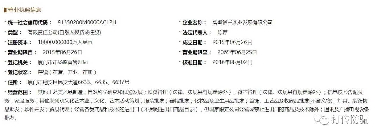 碧斯诺兰实业发展有限公司,成立于2015年6月26日,公司法人代表陈萍,1987年出生于福建龙岩。
