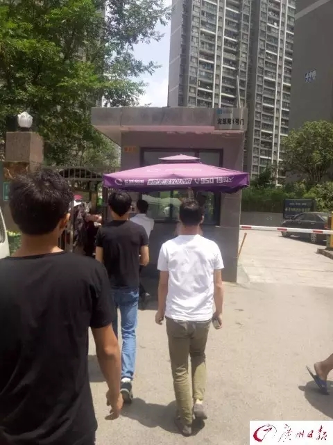 陈强拍摄的同学、“伙伴”带着他进入小区的照片。广州日报 图