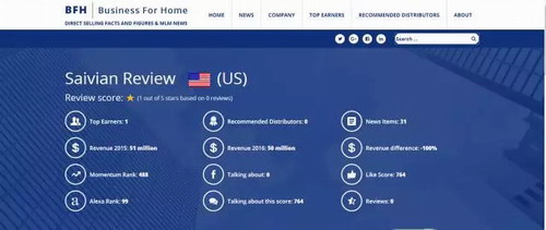 本刊记者进入BFH首页,发现该网站类似于论坛,并且是一个带有盈利性质的商业网站,没有任何官方背景。同时,该网站显示的“saivian”相关信息也并不如赛比安会员所说的那样强大。赛比安在该网站的综合评分只有1分(满分5分),在BFH网站于2016年6月14日最新发布的“全球直销500强”名单里,也没有找到赛比安的身影。