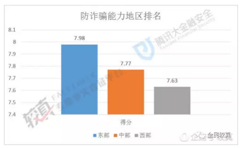从地域性上看,各地区防诈骗能力排名依次为:东部城市﹥中部城市﹥西部城市。东部城市对于资金盘骗局的敏感程度最高,中部城市次之,而西部城市的敏感程度最低。