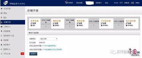 在另一份《TPS经销商协议和公司政策》中,TPS未要求任何人员通过采购TPS产品、服务和销售辅助品而成为经销商。但条款中特别指出,经销商明白:通过购买白金或钻石级别的店铺,他或她将获得更多功能的网店及更多的产品,最终将有助于这些高级别的店主来增加销售额,进而以获得更多的佣金。