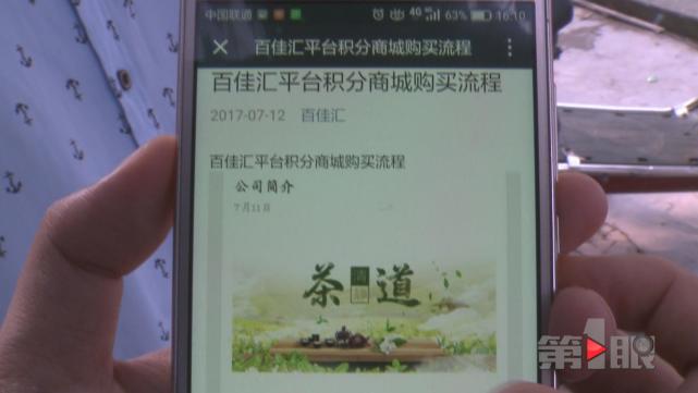 今年7月份,何先生的朋友给他推荐了一个名叫“百佳汇”的微信公众号,上面宣传说,花两千多元购买公众号商城里的茶叶,成为会员之后,商城可以帮忙代销这些茶叶,代销之后利润的70%给会员,最多十几天就能回款。何先生举例说,这些茶叶产品,每份2314元,购买之后,公司在十几天后,会返给会员2856元,一份就能赚五百多。