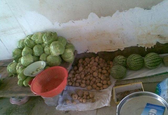 还有吃的土豆和大白菜,他们吃的也是寂寞...西瓜几天都不动的,只是摆设!
