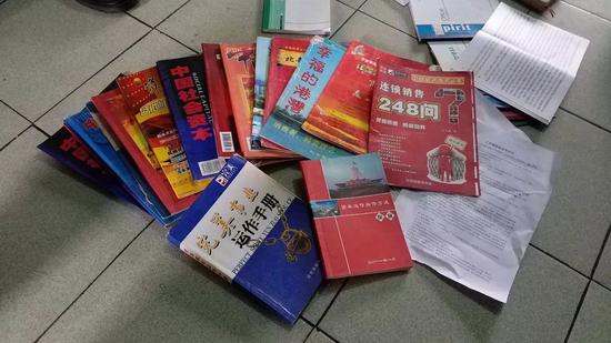 在这两个传销窝点内,行动人员查获了大量图书、笔记本等涉传资料。