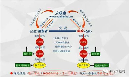 云联商城的商家,在交易成功之后,要把16%交给平台。平台也会按照每天万分之五左右的比例返回给商家。但实际上,这16%并不能算商家“上供”给平台,本质上由消费者承担。