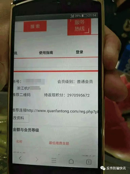 1月1日,反传防骗快讯接到一位来自广东男子小何(应举报者使用化名)的举报,该男子称自己在去年8月份通过朋友介绍加入全返通公司,前后投资30万元到全返通平台,其中大部分的钱是通过刷信用卡投入的,如今全返通公司停止提现已经3个月,由于信用卡的钱没有及时还上,信用卡公司已经将他告上了法院,现在也不知道怎么面对家人朋友。