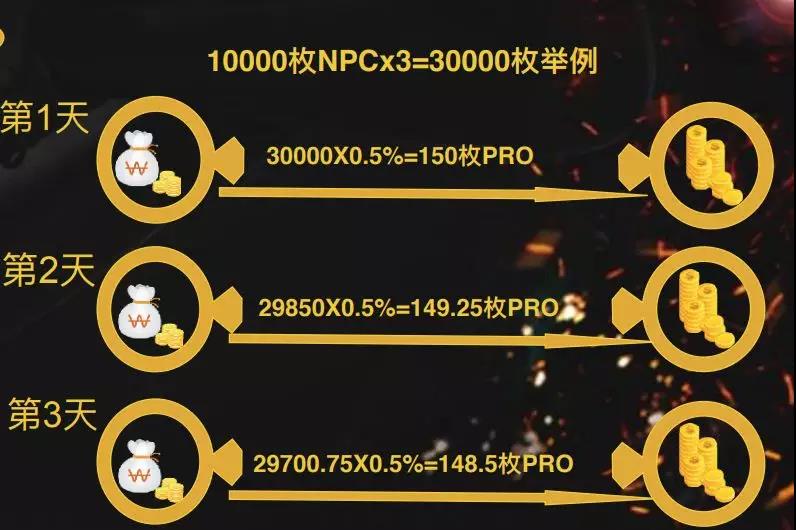 第二种为“收益币”(又名PRO),总发行量一亿枚,发行价2美金(折合人民币14元),平均每天最少涨幅0.3%,收益币是交易平台释放给会员的收益,会员所得收益币可到交易平台自由交易。