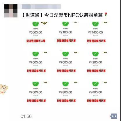 2018年1月5日,在经销商的朋友圈中,笔者看到涅槃币认筹报单更加火爆。