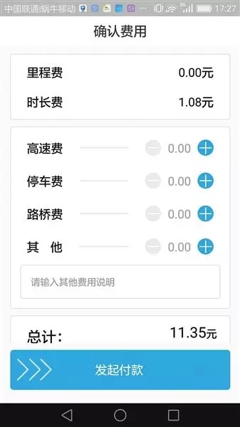 1月11日,记者以乘客的身份,通过万顺叫车公司的乘客App在定位附近下单叫车,随后记者的车主App中就收到了该订单信息。记者发现,接单之后,车主可自己选择到达叫车位置、已接到乘客和到达目的地。然而在收费明细中,尽管系统显示里程为零公里,依然可以发起收费。