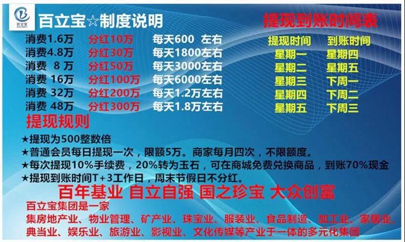 “投资1.6万元,分红10万元,每天提现300~400元左右,提完10万为止;投资3.2万,分红20万......投资16万,分红100万......60天左右回本”,在网络上,有大量关于百立宝的奖励制度宣传资料,其宣扬的高额返利可谓充满着巨大的诱惑力。