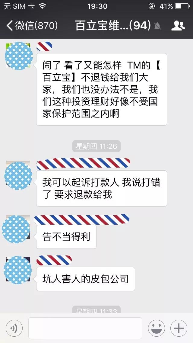 ^ 1月25日,百立宝维权群里的受害者展开激励讨论