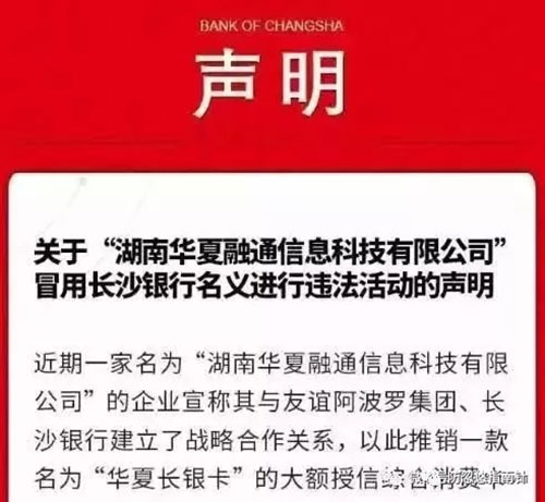 长沙银行官方微信号发布的声明