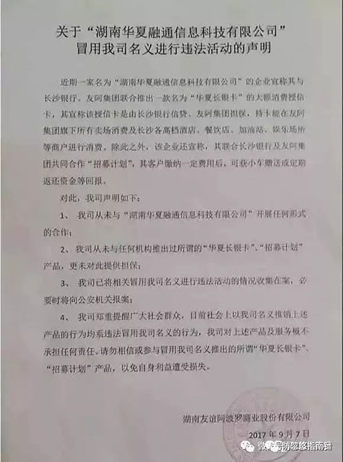 成立还不到一个月,湖南华夏融通就打着友阿集团、长沙银行的旗号,推销所谓的消费卡和招募计划,迫不及待地圈钱。