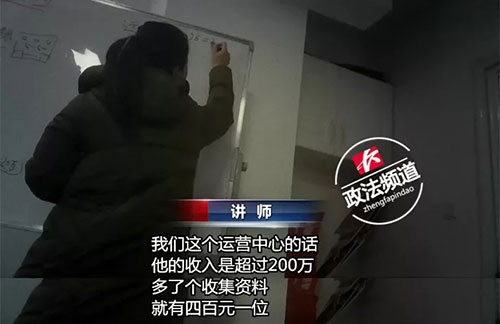 交10万元,不到一年就能赚200万?这又是如何得来的,这名讲师表示,所谓的收集资料就是只要是在你运营中心发展的代理商,不管是谁发展的,你都能拿到这400元每人的提成。