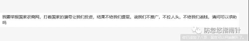 打着国家的旗号让我们投资,结果不给我们提现,说我们不推广,不拉人头,不给我们返钱。